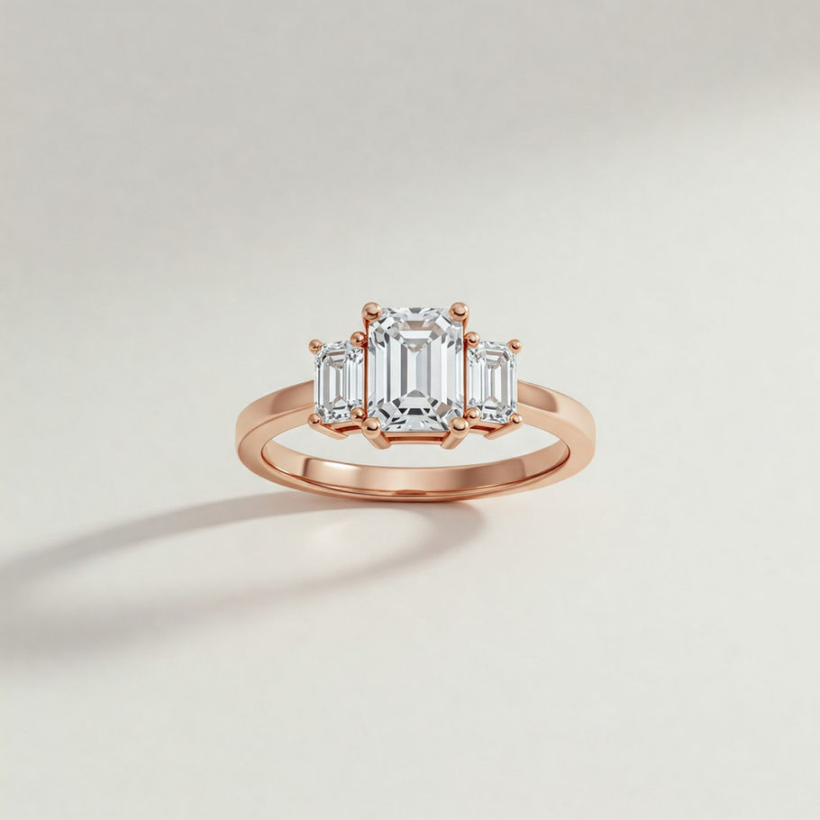 Celebrate timeless beauty with the Triad Elegance ring — a sophisticated three-stone design featuring dazzling emerald-cut diamonds set in your choice of Rose Gold, Yellow Gold, or Silver. Each diamond is precision-cut and securely nestled in a prong setting to catch the light from every angle.